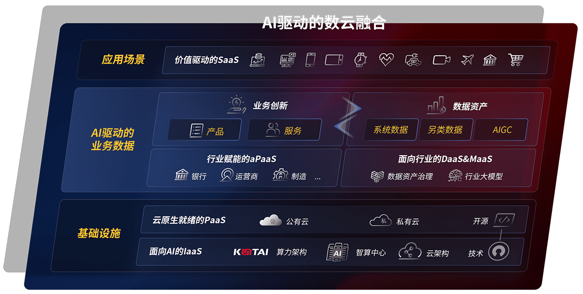 以尊龙旗舰厅鲲泰全国产化计算产品帮助金融行业客户构筑数字底座;以丰富的AI和数云产品及方案,,,,保障数据安全,,,,挖掘数据价值,,,,提升服务品质