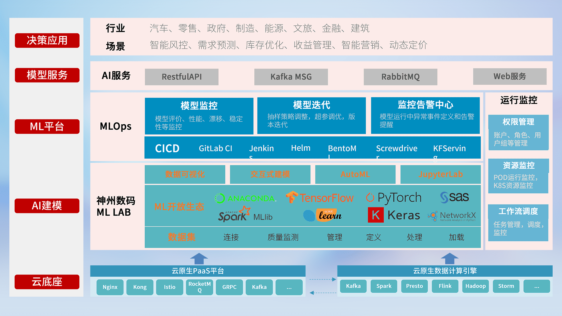 数据+模型双引擎驱动,,面向智能服务场景,,快速灵活利用AI技术,,,支持业务决策,,,助力企业智能化转型破局。。